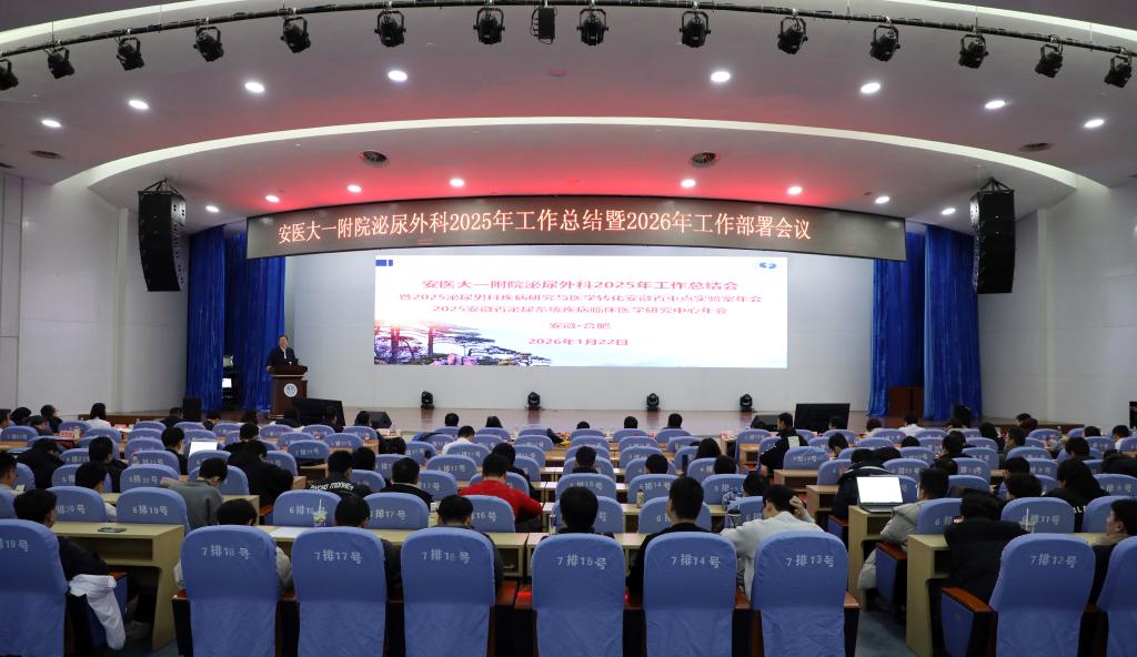 1月22日,泌尿外科2025年工作总结暨2026年工作部署会议在内科医技楼四楼会议中心召开。院长孙倍成,院党委副书记、副院长李阳新,副院长王珩,院党委副书记李琮,副院长、高新院区党委书记、院长陈旭林,副院长李小虎,副处级组织员汪安勇出席会议。安徽省医师协会会长、泌尿外科学科带头人梁朝朝等出席会议。