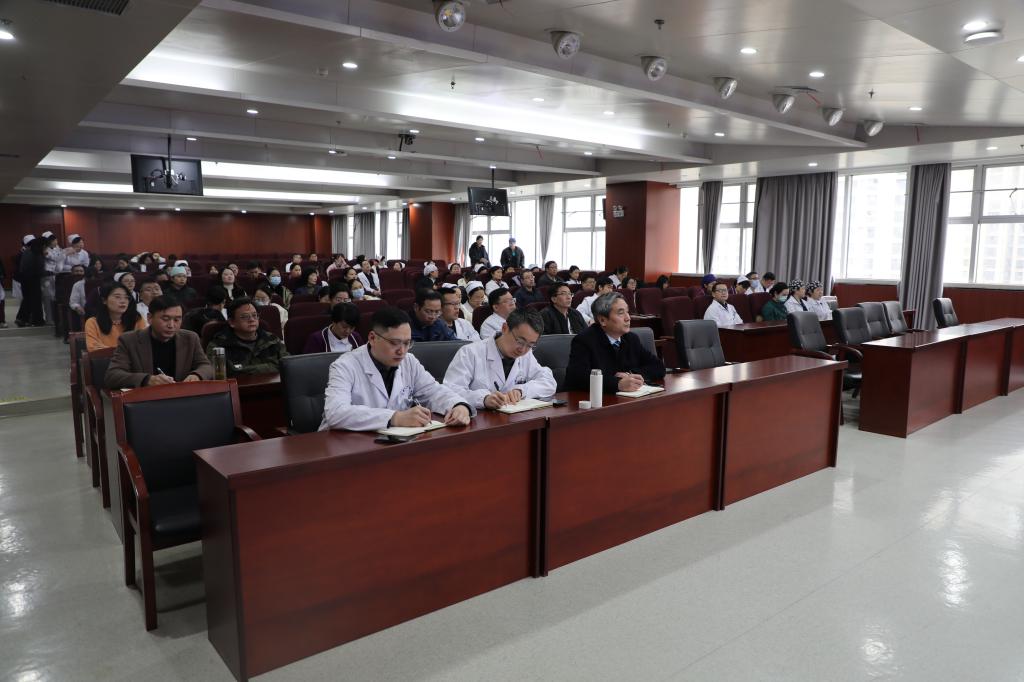 陈旭林以《学习贯彻党的二十届四中全会精神加快建设健康中国》为题,从“十四五”时期我国发展取得的重大成就、“十五五”时期经济社会发展的指导方针和主要目标、加快建设健康中国三个维度展开,党课内容紧密结合医疗卫生事业发展与医院建设工作实际,主题鲜明、内涵丰富。党的二十届四中全会关于“加快建设健康中国”的重大决策部署,为新时代医疗卫生事业发展指明了方向、擘画了蓝图,要深刻领会其精神实质,切实把思想和行动统一到党中央决策部署上来,认真落实卫生健康和医院各项重点任务。陈旭林表示,要深入学习贯彻党的二十届四中全会精神,以务实举措破解医疗服务痛点难点,让优质医疗服务惠及更多患者,用医者担当书写人民健康保障的时代答卷,为推进健康中国和健康安徽建设贡献安医力量。