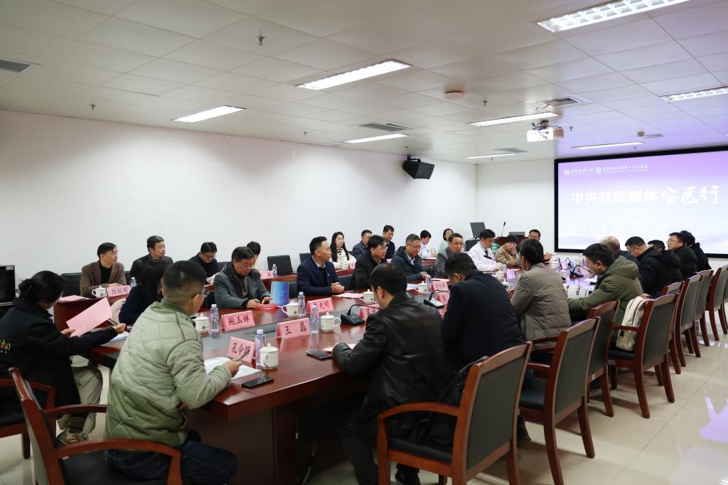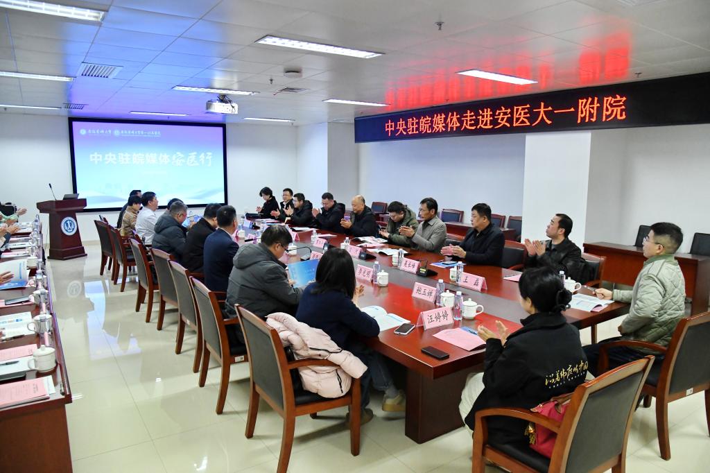 1月28日下午,“中央驻皖媒体安医行”活动走进我院。来自人民日报、新华社、中央广播电视总台、光明日报、经济日报等十余家中央驻皖新闻媒体的负责人和记者代表齐聚医院,深入感受医院蓬勃发展的生机活力,共同探讨新时代卫生健康事业发展的新路径。校党委常委、宣传部部长秦楠,医院党委副书记、副院长李阳新,副院长陈旭林、喻荣辉参加活动。