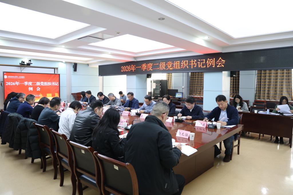 2月2日下午,医院在行政楼五楼会议室召开2026年一季度二级党组织书记例会。校党委副书记、院党委书记徐朝阳主持会议并讲话,院领导李阳新、戴晓支、吴晓莉、陈旭林参加会议。