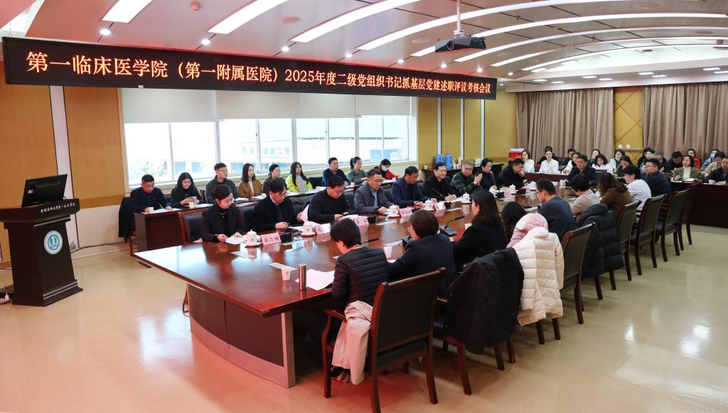 徐朝阳指出,过去一年,全院各级党组织坚决贯彻落实校党委、院党委决策部署,紧紧围绕学校第九次党代会和医院第五次党代会确立的目标任务,坚持以党建为引领,统筹推进各项工作,取得显著成效。就如何以更高标准、更实举措推进2026年全院党建工作,徐朝阳提出四点意见:一是强化政治引领,在凝心铸魂上再下功夫。要始终把政治建设摆在首位,健全理论学习长效机制,进一步提升“三会一课”、主题党日等组织生活质量。要严格落实意识形态工作责任制,加强舆情监测处置和阵地管理,确保医院发展始终沿着正确政治方向前进。二是夯实基层基础,在强基固本上再提质效。各级党组织要做到统一思想,抓好制度学习和执行,对所辖党支部做好精准指导,不断增强基层党组织政治功能、组织功能。三是深化融合赋能,在提质增效上再求突破。要坚持围绕中心、服务大局,抓好医院重点工作,健全完善党建与业务工作同谋划、同部署、同落实、同考核的一体化推进机制。要指导各党支部立足学科特色和专业优势,持续深化“一支一特”品牌建设。四是从严管党治党,在正风肃纪上再出硬招。要坚决扛起全面从严治党政治责任,确保压力层层传导、任务环环落实。用心用情解决群众急难愁盼问题,强化关键领域监督,织密织牢廉政风险防控网,全力营造风清气正、健康向上的良好政治生态和发展环境。