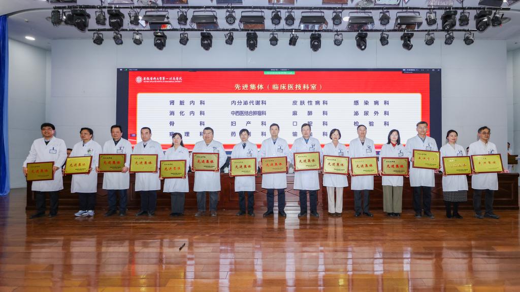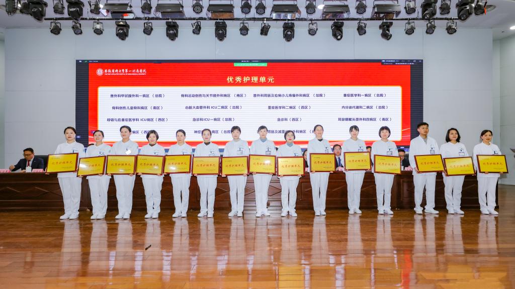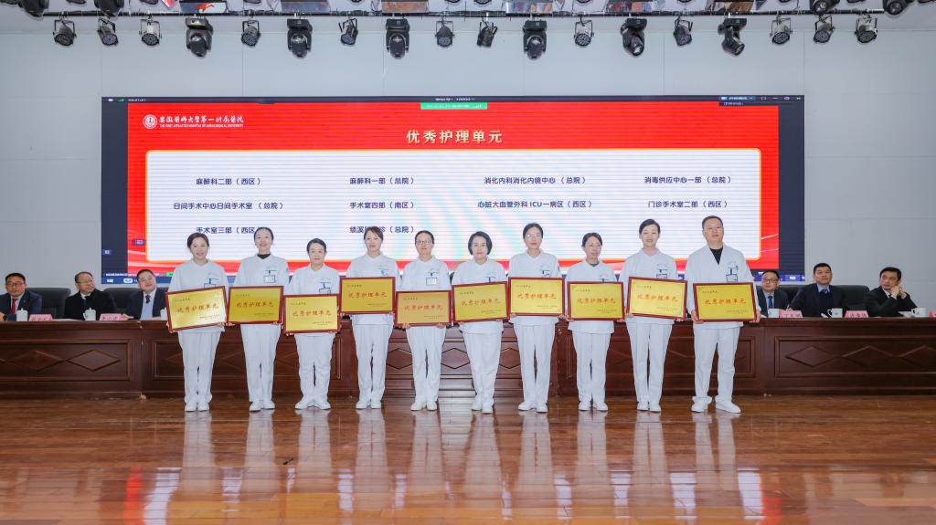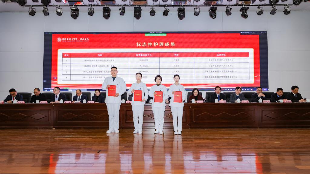 副院长王珩宣读医院表彰决定。与会领导为获奖先进集体、先进个人和标志性成果获得代表颁奖。