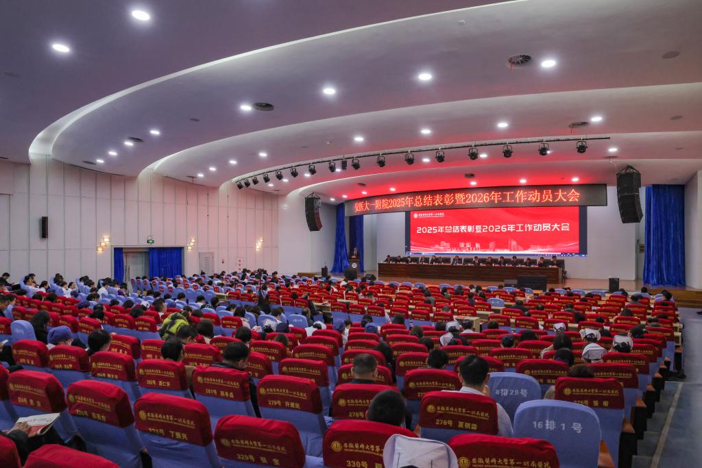 2月11日下午,医院在内科医技楼四楼会议中心召开2025年总结表彰暨2026年工作动员大会和2025年度退休职工荣休仪式。校党委副书记、院党委书记徐朝阳发表讲话,党委副书记、院长孙倍成作2025年度工作总结及2026年度工作部署。会议由院党委副书记、副院长李阳新主持。