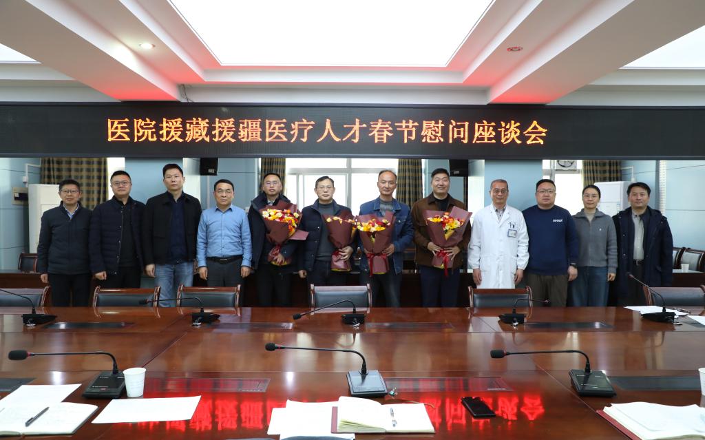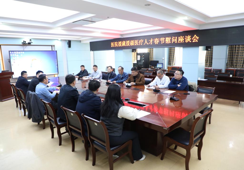 2月13日下午,医院在行政楼五楼第二会议室举行援藏援疆医疗人才春节慰问座谈会,医院党委副书记、副院长、总院区党委书记李阳新,援藏、援疆医疗人才,所在科室主任及医院相关职能部门负责人参加会议。会议由人力资源部部长刘鹏程主持。