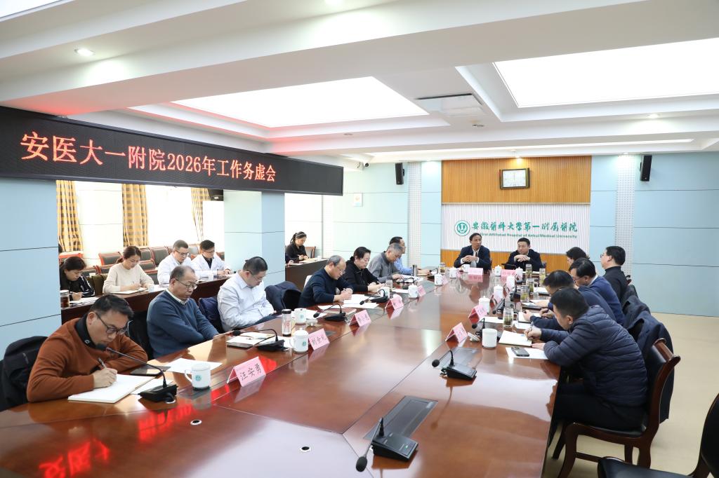 2月13日上午,医院在行政楼第二会议室召开2026年度工作务虚会。校党委副书记、院党委书记徐朝阳主持会议并作总结讲话,医院党政领导班子成员及相关职能部门负责人参加会议。