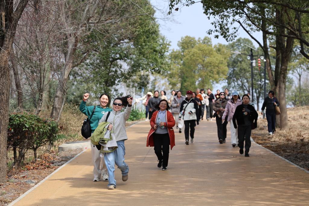 随着活动正式启动,百余名女职工精神抖擞、意气风发,沿着公园蜿蜒的健身步道阔步前行。春日暖风拂面,园内景致怡人,行进途中欢声笑语不断。大家用脚步丈量春日美景,用热情拥抱美好生活,生动诠释了健康与快乐的深刻内涵。