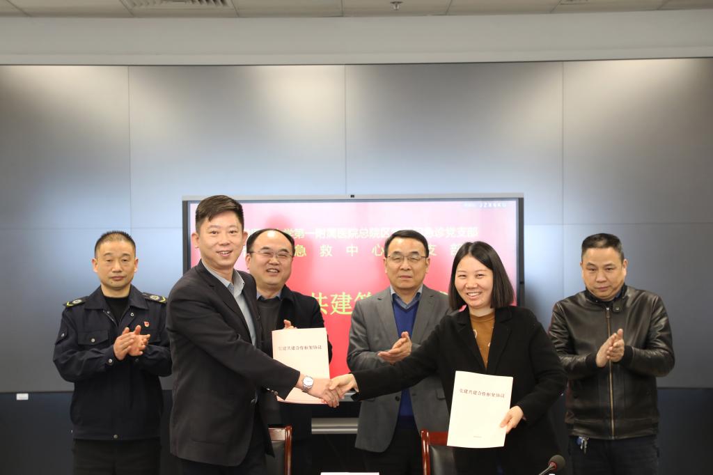 双方围绕“资源共享、优势互补、互相促进、共同提高”的共建目标,就理论共学、业务共融、活动共办等方面达成深度共识。随后,总院区党委委员、门诊部副部长、绩溪路门诊部部长、门诊绩溪路院区第一党支部书记吴丹和合肥市急救中心支委委员、中心副主任汤成波作为双方代表共同签署《党建共建合作框架协议》,协议明确了共建内容、责任分工及长效机制。