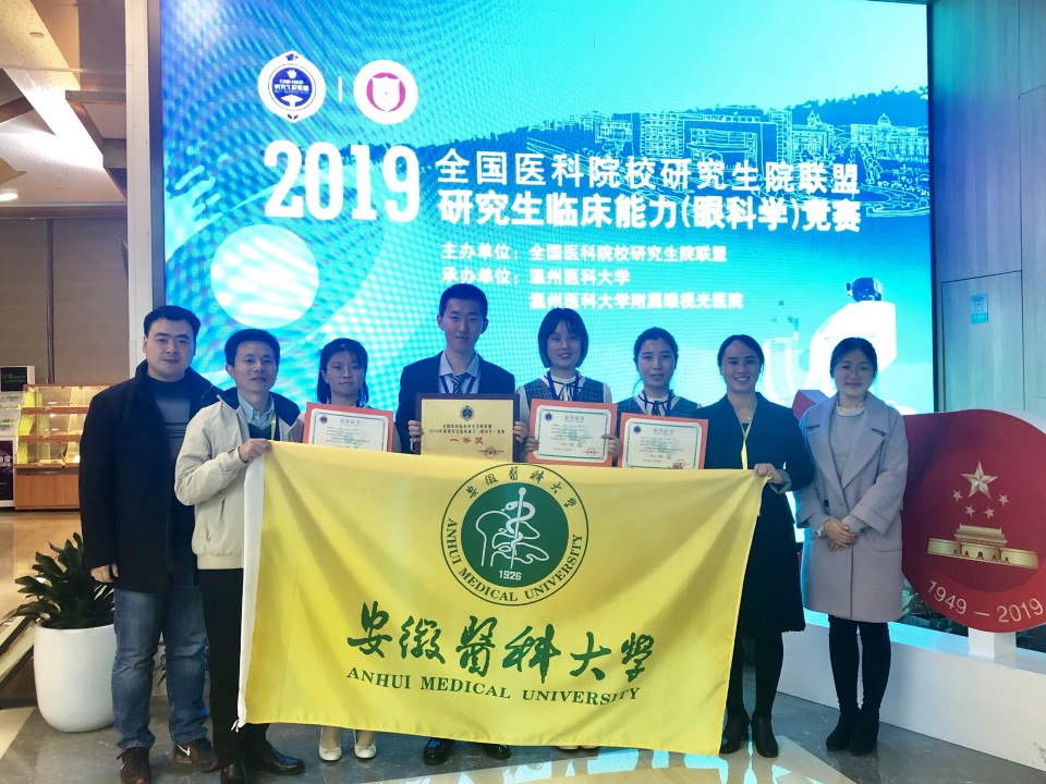 11月28日-30日,2019全国医科院校研究生联盟研究生临床能力(眼科学)竞赛在浙江温州医科大学举行。由我院眼科学夏林、丁洁、王光鑫和安琪四位专业学位研究生组成的安徽医科大学代表队,凭借扎实的专业理论知识、娴熟的临床技能以及沉着稳定的临场发挥在比赛中过关斩将、脱颖而出,最终荣获“一等奖”。