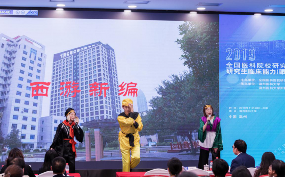 本次大赛代表全国医科院校眼科学专业学位硕士研究生临床能力的最高水平,共有来自全国33所医学院校的130多名优秀眼科研究生代表参赛。比赛分为初赛和决赛两个环节,初赛以计算机在线考试形式进行,重点考察选手的专业知识储备。我院研究生丁洁以86.5分的优异成绩,位列所有参赛选手第一名,团队以总成绩第二名绝对优势挺入决赛。决赛分为临床科研课题设计、眼科显微手术技能、病例汇报和科普作品展示等4个环节。在“临床科研课题设计”现场抽题后,眼科团队克服时间紧迫等诸多困难,连夜进行科研思路的设计、讨论、查新,制作汇报PPT,一直工作到次日天明,缜密的科研思维和新颖的设计方案得到了评委的好评;在“眼科显微手术技能赛”中,选手们凭借熟练而沉稳的操作获得了89.4分的全场最高分;“病例汇报”和“科普作品展示”两个比赛环节,选手们稳重大方和极富创造力的表演赢得了评委专家和现场嘉宾的热烈掌声。