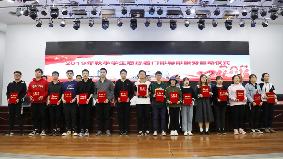 启动仪式上,李琮宣读了受到表彰的“优秀学生社会工作者” 、“优秀学生志愿者” 学生名单,与会领导为获奖学生代表颁奖,勉励他们继续投身公益事业,服务社会,提升自我。即将投身秋季门诊导诊服务的2018级康复治疗学专业符亚丽同学代表全体志愿者发言,表示将认真做好导诊服务,为广大患者服务。院团委委员吴丹为学生志愿者进行了导诊岗前培训。