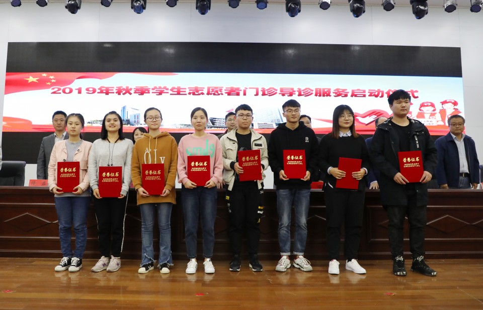 11月11日,医院在会议中心举行学生志愿者服务队志愿导诊服务总结表彰暨2019年度秋季导诊启动仪式。院领导戴晓支、李琮,第一临床医学院学生党总支副书记沈慧、薛磊、医院门诊部主任胡华青、院团委书记黄尧等出席会议,第一临床医学院参加导诊服务的600余名学生参加。会议由团委副书记颜蕴文主持。戴晓支在会上代表医院感谢上一批辛勤工作的志愿者们,并欢迎新一批学生加入志愿服务群体中来,医院志愿导诊服务越来越受到广大师生和社会各界的关注和认可,是与全体师生员工的努力分不开的。他指出,志愿服务是高尚的事业,是弘扬社会正能量的重要载体,他希望同学们继续发扬志愿精神,不断提升自己,做青年表率。要在上一届师兄、师姐工作的基础上,更加创新性的完成工作,期待明年表彰更多的优秀学生志愿者。此外,同学们要合理安排好学习和志愿服务的关系,针对工作上遇到的问题,对医院医疗服务管理工作提出宝贵的意见和建议。