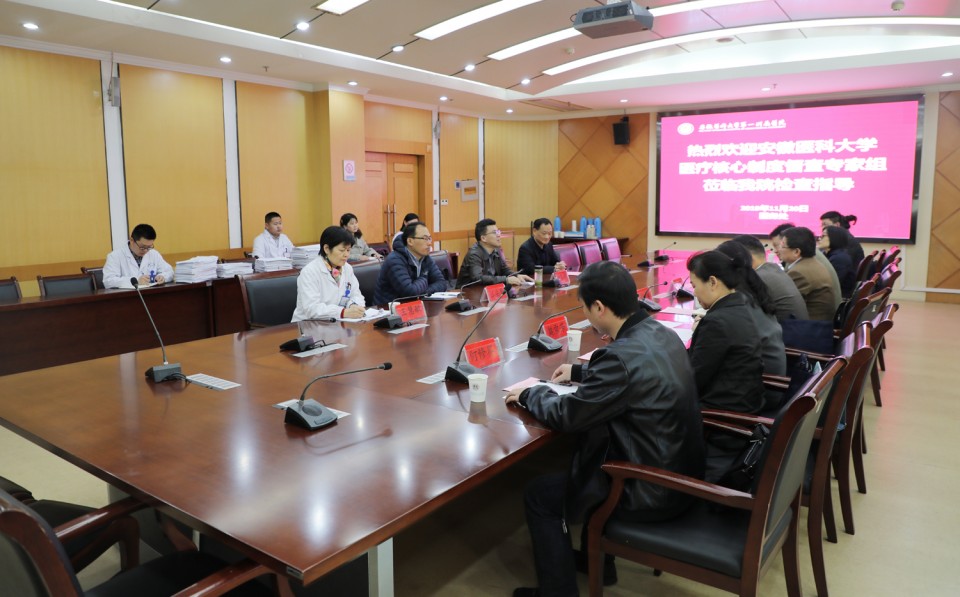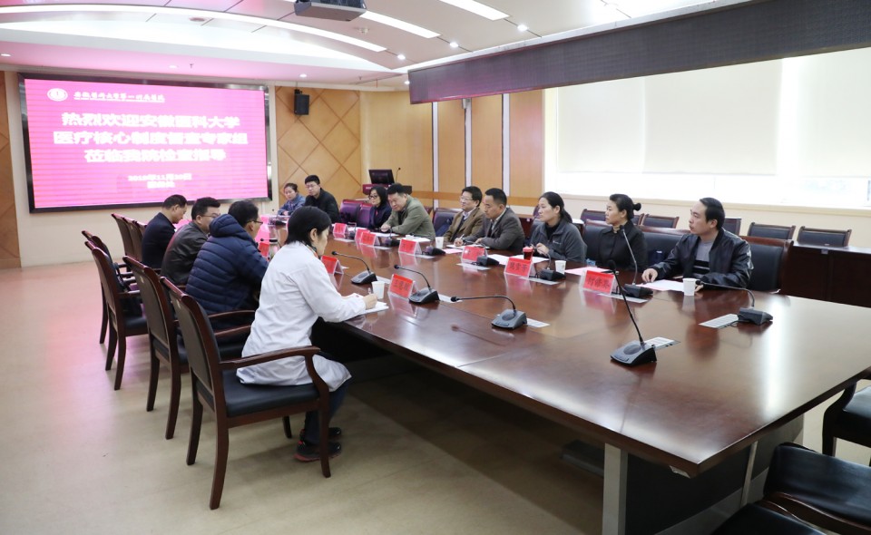 11月20日下午,校医院管理处处长范自法一行莅临我院督查2019年医疗核心制度落实情况和重点项目建设情况,常务副院长李家斌在干部病房二楼会议室组织召开迎检对接会,会议由医务处处长陈光辉主持。李家斌代表医院对督查组一行表示欢迎和感谢,指出落实医疗核心制度对于规范诊疗行为,提高医疗质量,保障医疗安全具有重要意义,我院高度重视此次检查工作,希望督查组能够多提意见、指出问题,进一步推动我院医疗核心制度落实。范自法介绍了本次督查的专家队伍和主要内容,相关科室与督查组就检查项目进行一一对接。