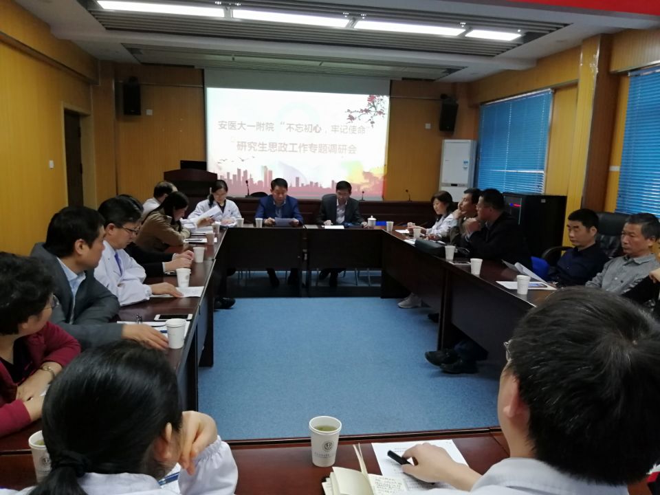 根据大学《关于开展“不忘初心、牢记使命”主题教育暨研究生思政会筹备专题调研工作的通知》文件要求,11月5日下午,医院召开全院学科教研室主任调研会,以集中座谈的形式,围绕医院研究生思政教育、培养工作中存在的问题和困难,开展调研工作。副院长费广鹤、党委副书记戴晓支、全院学科教研室主任参加调研会。