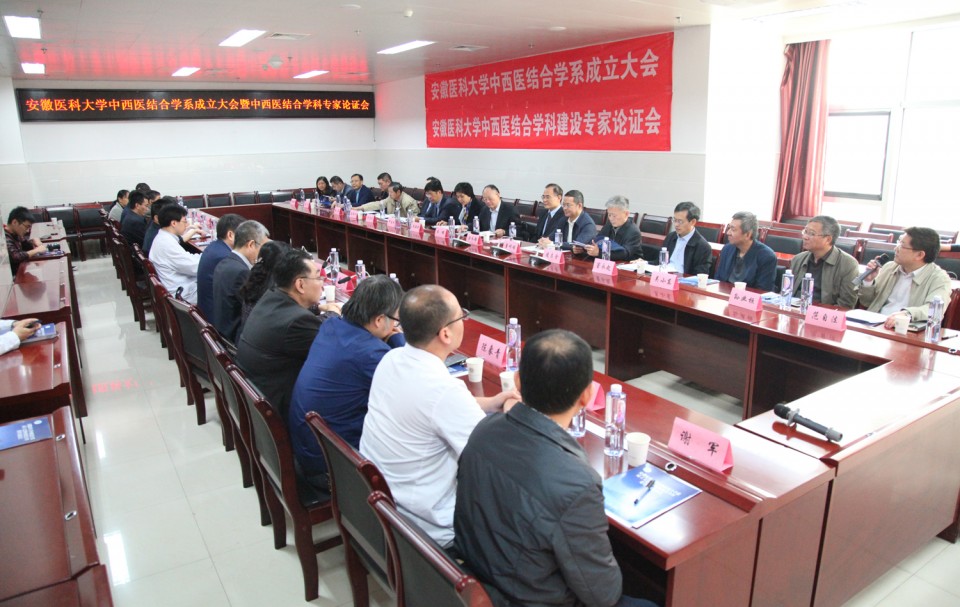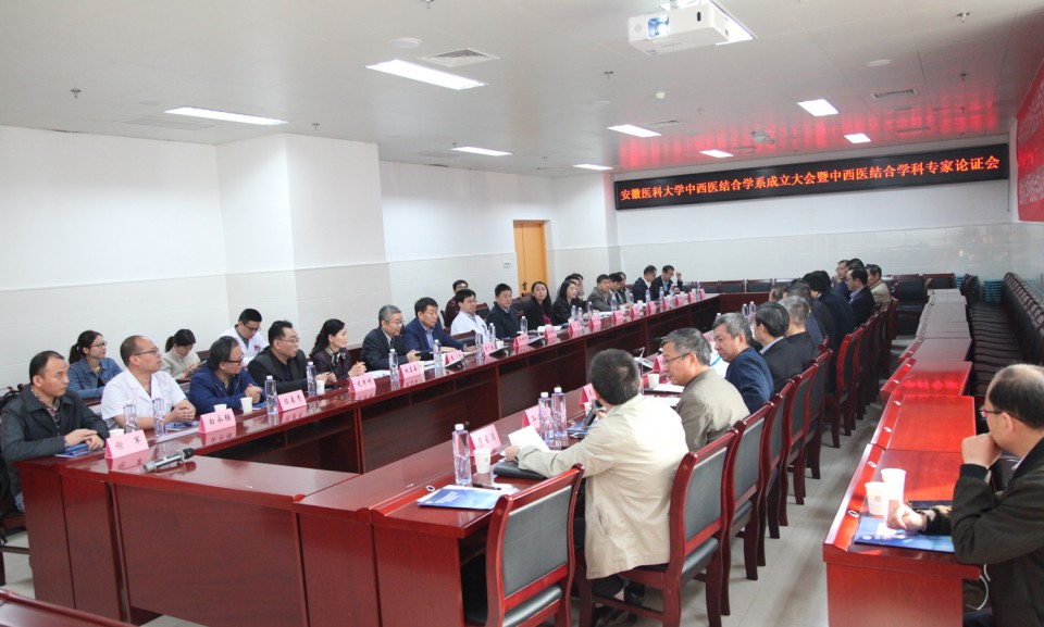 11月8日上午,安徽医科大学中西医结合学系成立大会暨中西医结合学科建设专家论证会在我院高新院区药剂科会议室举行。安徽省卫健委副主任、省中医药管理局局长董明培、安徽医科大学副校长余永强教授、安医大一附院副院长费广鹤教授、国务院学位委员会中西医结合学科评议组成员海军军医大学凌昌全教授、南京中医药大学战丽彬教授、中国人民解放军总医院窦永起教授。学校医院管理处、研究生院、科研处、发展规划处相关负责人,以及来自省内兄弟高校中西医结合学科的带头人、中西医结合学系承办单位及共建单位的代表共50余人参会。会议由校医院管理处范自法处长主持。