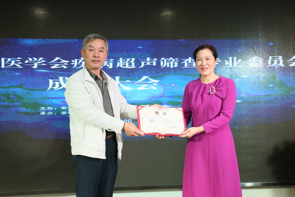 10月19日至20日,由安徽省预防医学会主办,我院承办的安徽省预防医学会疾病超声筛查专业委员会成立大会暨超声诊断学新进展继教班在合肥召开。安徽省预防医学会会长朱启星教授、安徽省预防医学会秘书长陈广信教授、院党委副书记戴晓支及来自全省各级医疗机构、疾控机构的200余名超声及疾控工作人员参加了会议。本次大会经过民主选举产生了首届安徽省预防医学会疾病超声筛查专业委员会,我院超声科医疗副主任、主任医师郑慧当选为第一届疾病超声筛查专业委员会主任委员,超声科副主任医师张婧姝当选为副主任委员,我院多名专家担任常委及委员。安徽省预防医学会会长朱启星教授为主任委员及副主任委员颁发了聘书。
