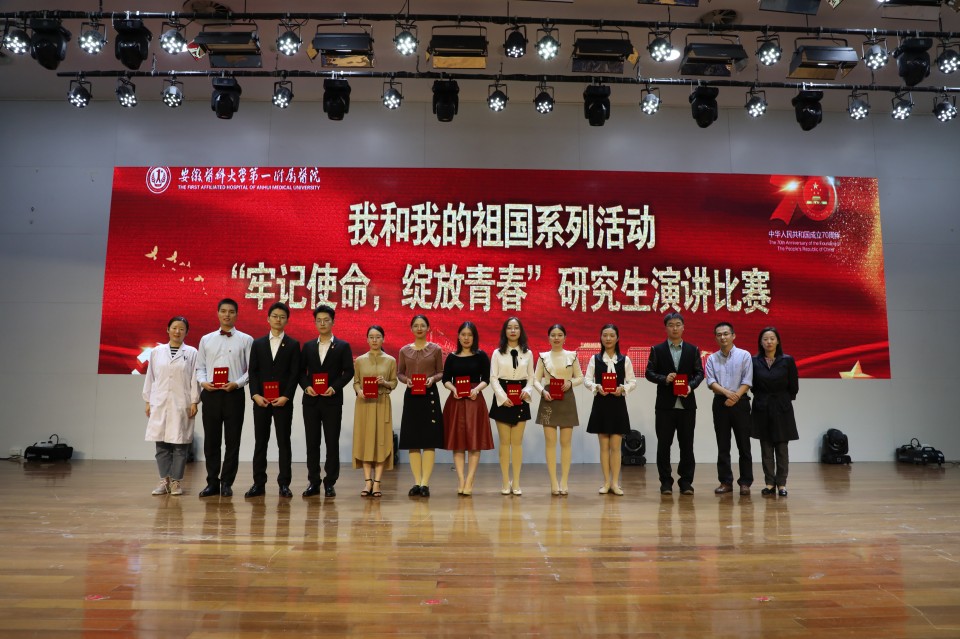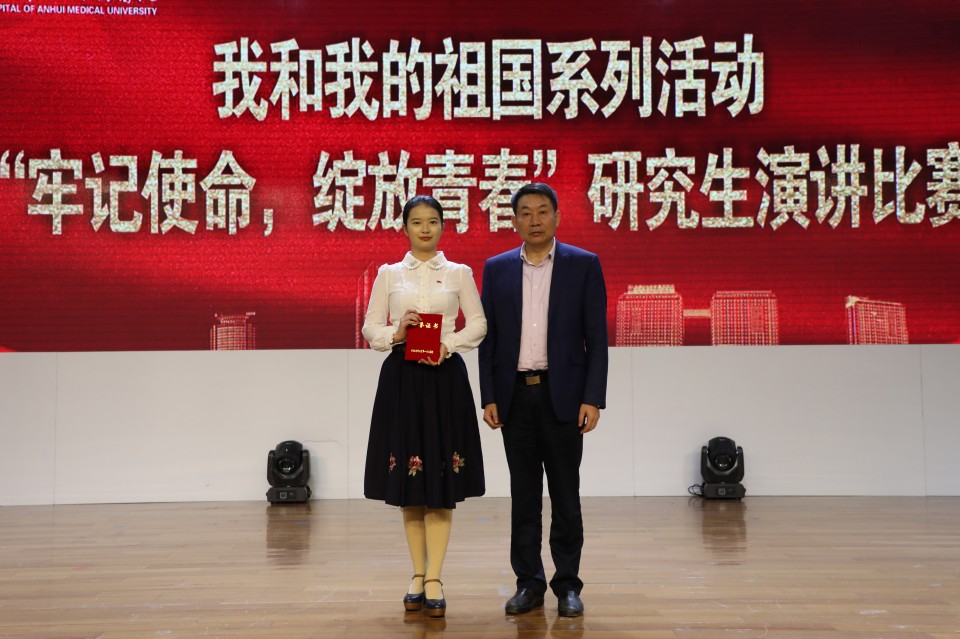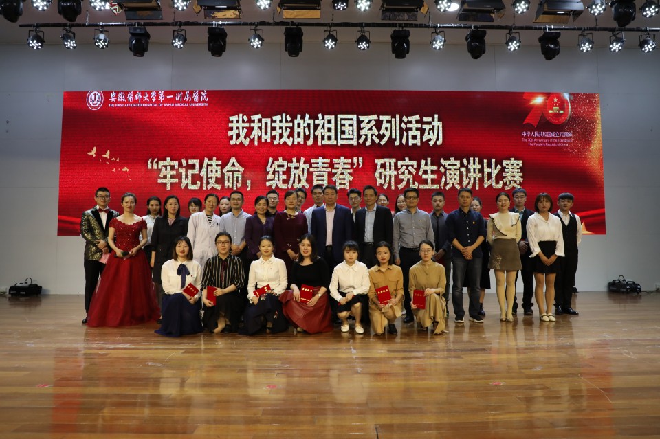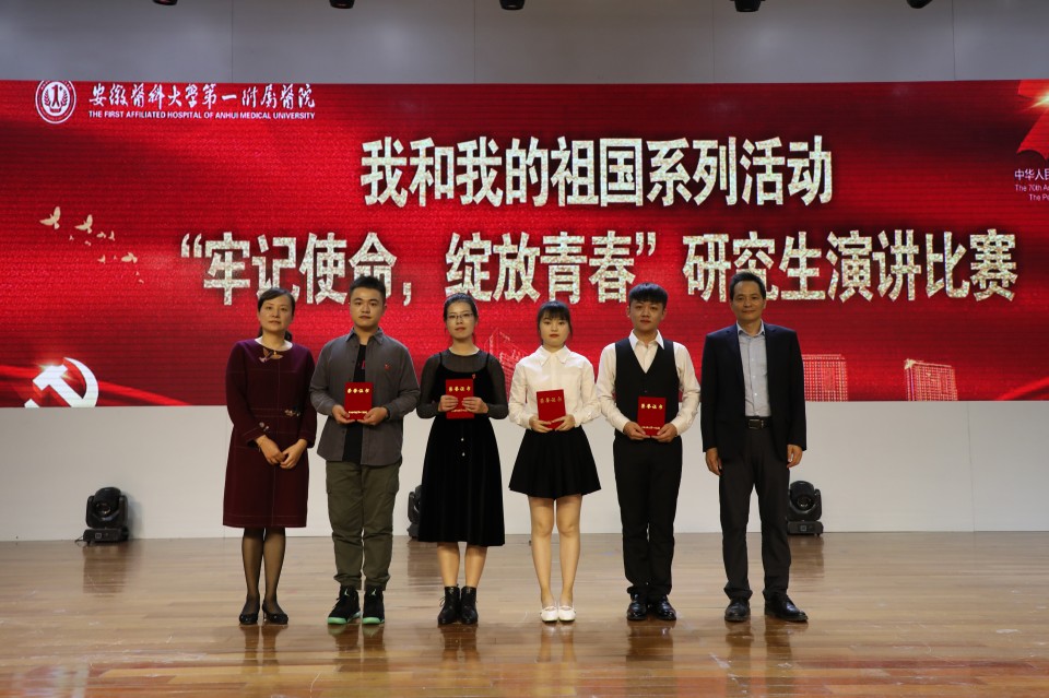 10月24日下午,由研究生党总支主办的“我和我的祖国”系列活动之“牢记使命、绽放青春”研究生演讲比赛,在内科医技楼四楼会议中心举行。院党委书记金宗祥、院长梁朝朝参加开幕式并讲话,安医大学生处处长、党委学工部部长马军成、安医大研究生学院直属党支部书记、党委研工部部长李震静、副院长费广鹤、党委副书记戴晓支参加活动。演讲比赛开幕式由党委副书记戴晓支主持。