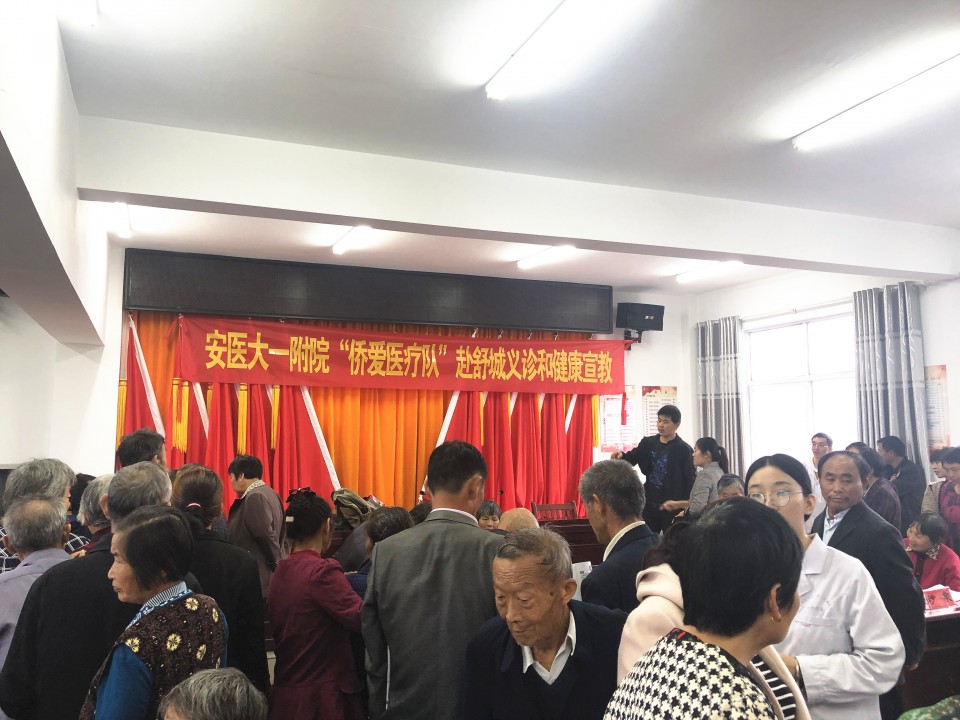 为深入开展“不忘初心,牢记使命”主题教育,为困难归侨侨眷和群众提供及时有效的医疗健康服务,10月13日,由安徽省侨联与安医大侨联联合主办的“侨爱心送温暖”义诊活动在舒城县张姆桥镇长冲村举行。我院心内科、心外科、内分泌科、口腔科、神经内科、超声科、消化内科、呼吸内科、皮肤科、眼科的医学专家和护理骨干组成“侨爱医疗队”,一大早便奔赴了义诊现场。安徽省侨联主席吴向明,安医大党委常委、统战部部长顾秀平,安医大侨联主席王爱玲带队参加了此次活动。