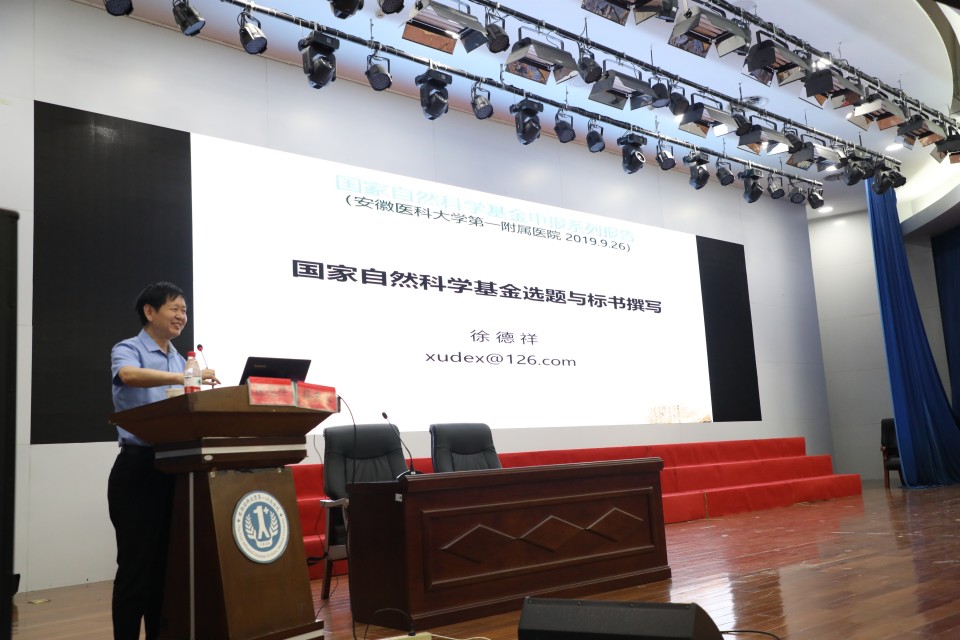 徐德祥教授就基金项目申报基本情况及如何撰写高质量的标书向与会人员分享了自己的心得和经验。从前期的文献阅读到最后的形式审查要点,以通俗易懂的方式深入浅出地向现场听众展示了国家自然科学基金项目申请的全过程。最后徐教授还分享了申报国自然的小秘诀:“特色和创新是能否成功的第一要素;选题恰当和高质量标书是申报成功的关键;机会给准备充分者,细节决定成败”。