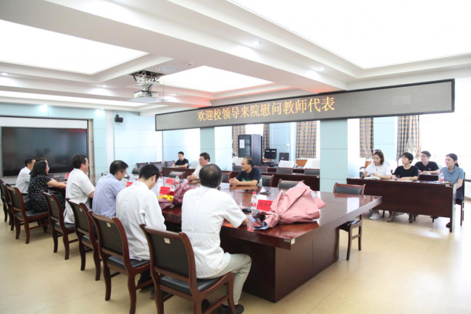 在第35个教师节来临之际,9月10日上午,校党委书记顾家山一行来院慰问教师代表,院长梁朝朝、副院长王珩、党委副书记戴晓支,以及党委办公室、人事处、教育处、党委宣传部等相关职能处室负责人和工作人员参加了慰问活动。