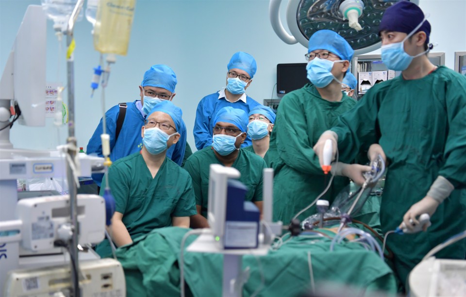 9月11日,安徽医科大学第一附属医院手术室里,12位马来西亚医生正在“取经学艺”。当天,首届“健康丝绸之路----微创泌尿外科技术国际培训班”在安医大一附院举行。安医大一附院泌尿外科组织强大的专家教学团队,两天内通过54台微创手术密集的示范教学,结合理论讲解及科研交流的形式,为外籍医生传经送宝。