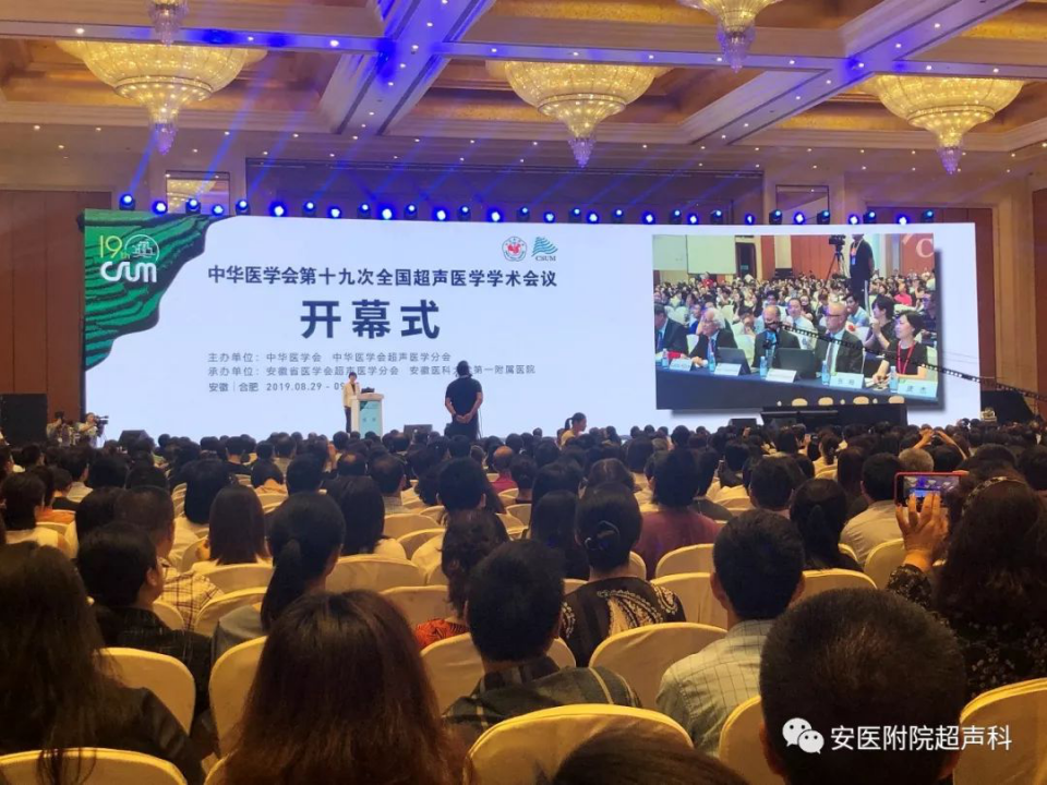 由中华医学会超声医学分会主办、安徽省医学会超声医学分会及我院超声医学科承办的第十九次全国超声医学学术会议于8月29日在合肥召开。中华医学会超声分会主任委员姜玉新教授、我院费广鹤副院长、安徽省医学会柴培钰副秘书长到会并致辞。来自国内外的一千六百多位专家同道参会。大会由梁萍教授主持。
