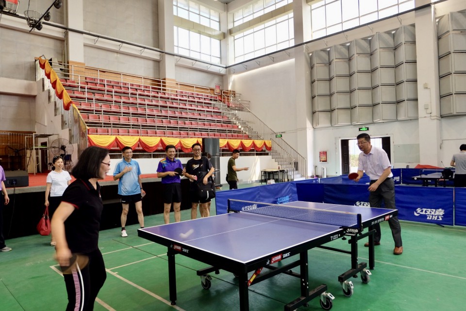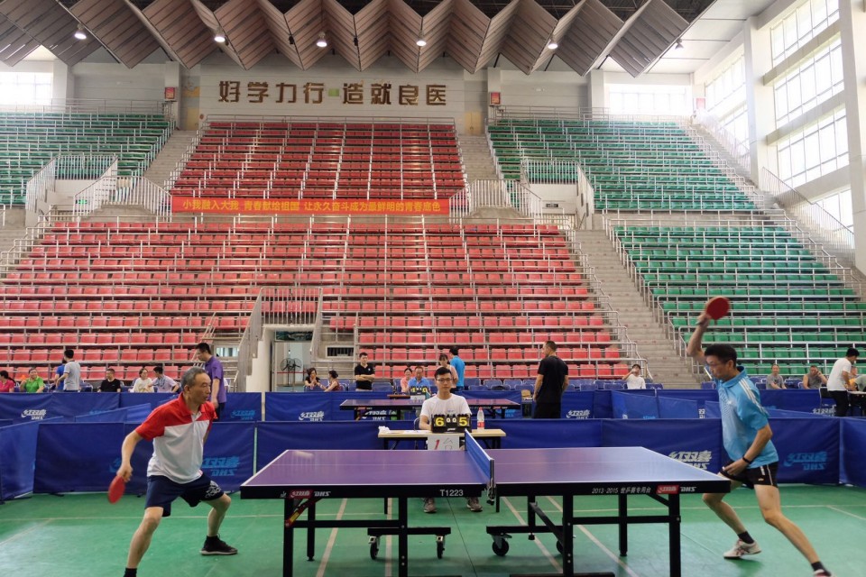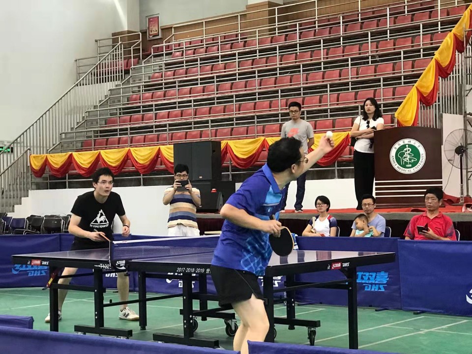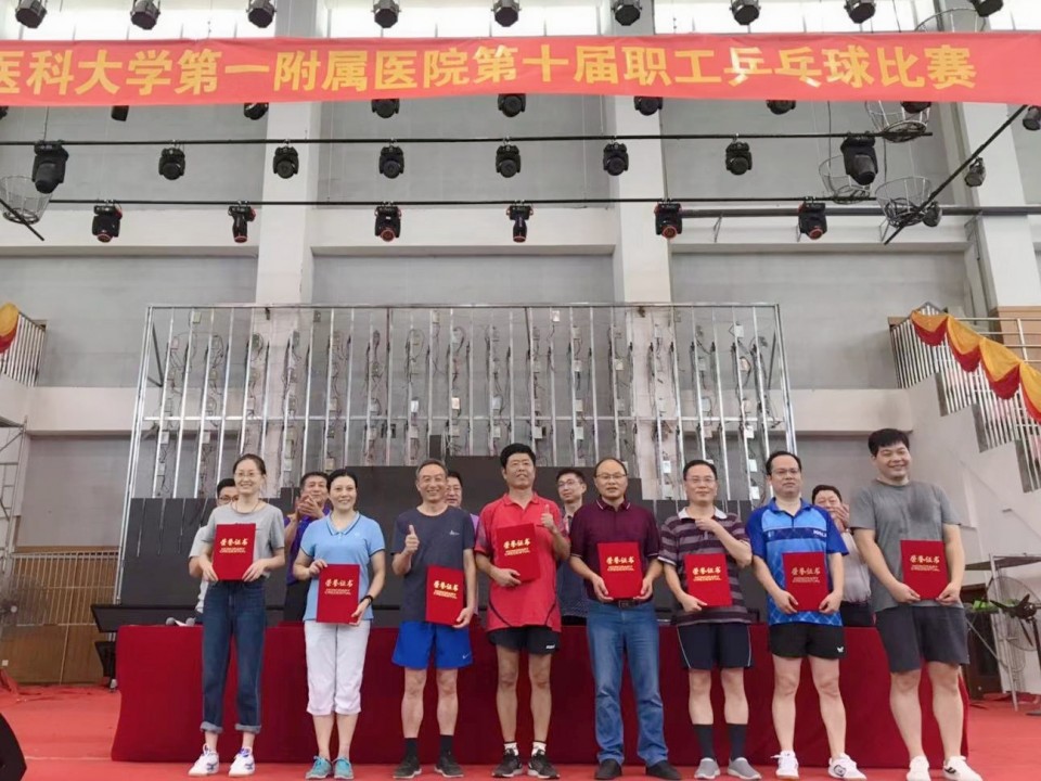 8月17日上午,我院第十届职工乒乓球比赛在校体育馆举行。院党委书记金宗祥宣布安徽医科大学第一附属医院第十届职工乒乓球比赛开始并为比赛开球,副院长王珩、党委副书记戴晓支等参加开幕式。这次乒乓球赛,由院工会主办,院乒乓球协会协办,校人文医学院体育教学部承办,是医院庆祝新中国成立70周年系列活动“协会活动季”的重要内容之一,是精神文明和医院文化建设的重要组成部分。医院领导以实际行动支持比赛,首次组建了由王珩副院长、戴晓支副书记组成的院领导队。各基层工会也积极响应、踊跃报名,共有23支代表队的80名职工参加此次比赛。比赛分为混合团体、男子单打和女子单打三个项目,分别决出团体和个人一二三等奖。