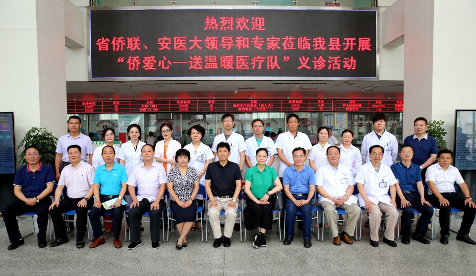 7月19日-20日,由省侨联与安徽医科大学、安医大一附院联合承办的“侨爱心-送温暖”义诊活动在霍邱县举行。我院朱立新、林敏、田仰华、马红秋、朱润硕、王杨、程文、盛哲、王婷婷9名医疗队员,在安医大党委常委、统战部部长顾秀平的带领下,不畏酷热,参加了此次活动。