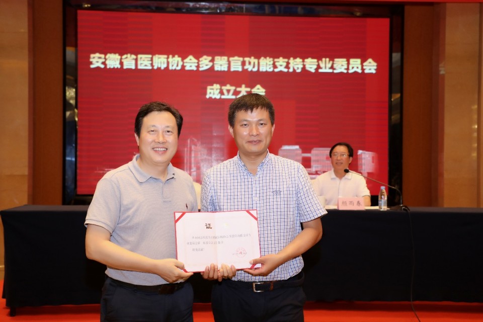 7月18日,“安徽省医师协会多器官功能支持专业委员会”成立大会在合肥丰大国际酒店召开。安徽省医师协会会长梁朝朝教授、安徽省医师协会秘书长颜雨春教授出席成立大会并致辞。我院重症医学科邵敏主任当选第一届主任委员。安徽省医师协会多器官功能支持专业委员会的成立,旨在整合重症、急诊、心脏、肾内、感染等多学科的技术力量,开展多学科合作与融合创新,规范化实施和开展器官功能支持相关技术。该专业委员会的成立必将给急危重症患者带来更大的福音,促进我省重症医学的积极、健康、有序和科学的可持续发展。