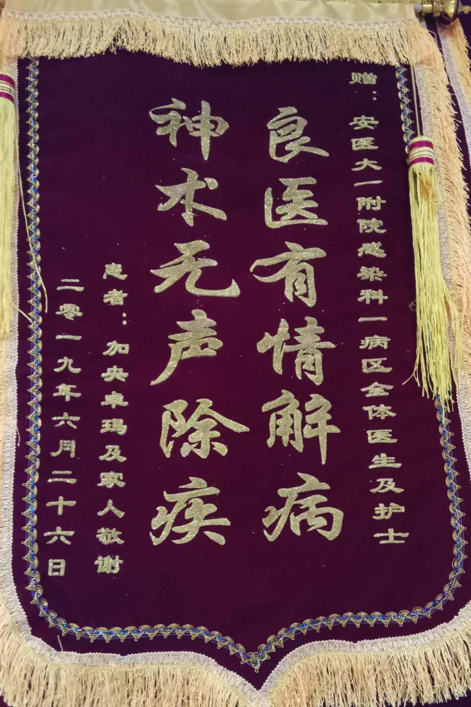 6月27日上午,20岁的西藏女孩加央卓玛在我院感染病科办好出院手续后,和她的爸爸妈妈一起来到医生办公室,给救治她的医生敬献了洁白的哈达。加央卓玛激动的说:“是安医大一附院给了我第二次生命。”西藏女孩在安徽突患急性肝衰竭