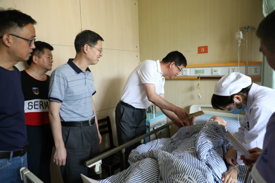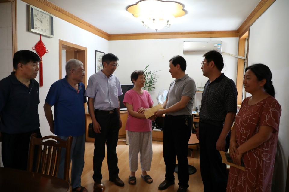 “七一”来临之际,院领导金宗祥、梁朝朝、李家斌、陈宏凯、费广鹤、周典、戴晓支在党委工作部、老干科等部门负责同志的陪同下,前往离退休老党员的家中、病床前,为他们送去党的温暖与关怀,带去了慰问信和慰问金,并向他们致以节日的祝贺和诚挚的慰问。院领导与老党员们拉家常、嘘寒问暖,并亲切询问了他们的生活起居、健康状况,对他们为医院的所做的贡献致以崇高的敬意和感谢,鼓励他们要树立战胜当前困难的信心和决心,把日子越过越好。并表示医院将会尽最大努力持续给予帮助和支持,切实让老党员及困难家庭感受到党的温暖、医院的关爱。(宣传部 江默)
