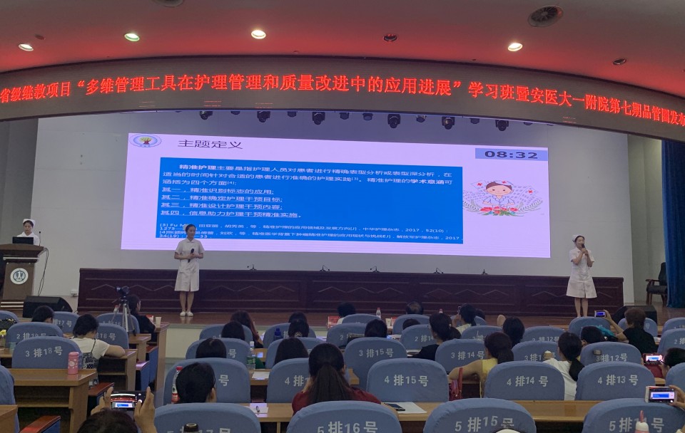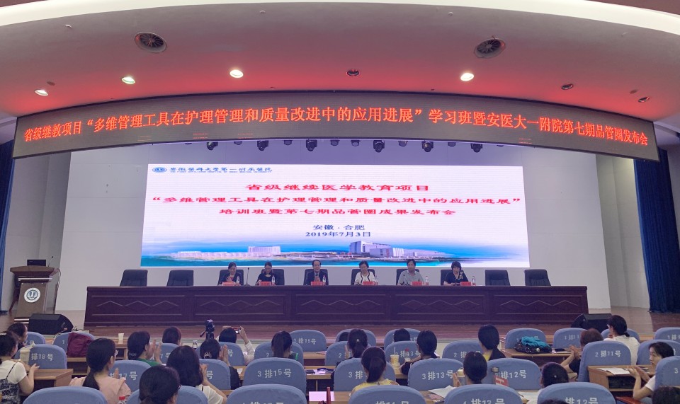 7月3日,医院在内科医技楼四楼会议中心举办了2019年第七期院内品管圈成果发布会。会议邀请中国医院品质管理联盟主席、清华大学医院管理研究院院长高级顾问刘庭芳教授作为首席评审专家,及安徽省护理学会理事长武义华等多位省内知名护理管理专家进行现场指导。来自安徽省各级医院及相关单位的400余名护理工作者参加发布会。通过前期分片区五个场次的认真评比,遴选出具有专科特色、落实规范、效果突出的30个优秀品管圈进行成果汇报,其中问题解决型15圈,课题达成型15圈。发布会上,各品管圈小组精心准备,通过深情并茂的演讲、小组合作式汇报等形式展示了活动过程及取得成果。专家严格按照评价标准打分,最终评选出课题达成型和问题解决型品管圈各一等奖3个,二等奖5个,三等奖7个。