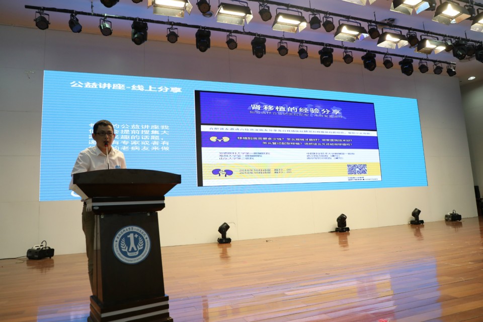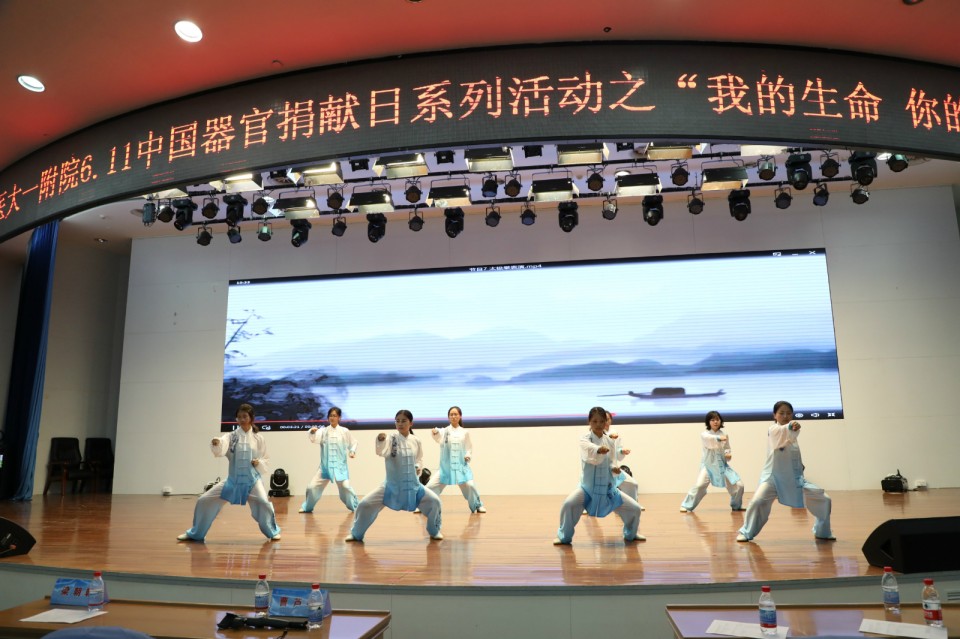 移植后的病友们分享了他们和家人、医务人员共同和疾病进行斗争时的痛苦历程。在接受到器官捐献移植后,他们自强不息、勇于担当,铮铮铁骨,七尺男儿,这是一群不屈不挠的群体。王平同学代表安徽医科大学大学生发言,她说:“作为医学生,时代赋予我们责任,给予我们创造和发展的机遇。我们将努力钻研器官移植技术,加大自愿捐献理念的传播,让众多病患得以新生。受捐者黄先生在接受安徽经济生活频道帮女郎采访时,表示自己的女儿是一名在校学生,收到器官捐献者的鼓舞,女儿说,自己父亲的生命是别人给予的,自己也应当参与到器官捐献这样有意义的事情中,人人为我,我为人人。OPO办公室申振副主任为我们讲述了作为器官捐献协调员的所思所行。心理学专家—刘彩老师上台与我们一起宣教互动。爱心小天使陈瀚熙为我们带来葫芦丝演奏《渔歌》,大学生太极拳代表队为我们带来有益于术后康复的功夫拳法,让我们在观赏的同时收获健康。张胜利老师给我们带来独唱歌曲《父母在,家就在》。韦天贵老师带来节目《轻轻菩提树》。