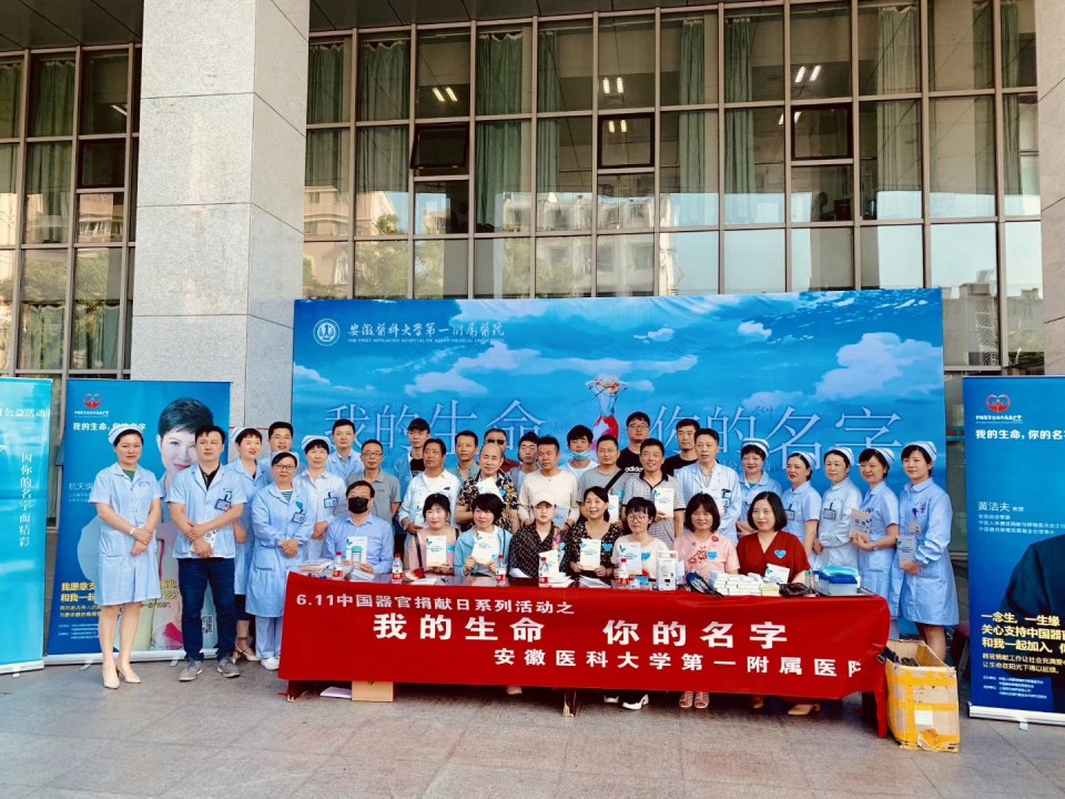 今年6月11日是第三届中国器官捐献日,今年的主题是“我的生命,因你的名字而精彩,让生命在阳光下传递‘’。上午8时整,肾脏、肝脏和角膜移植专家在绩溪路门诊广场举行了免费义诊活动,向前来就诊的患者和广大市民普及器官捐献相关知识,让大家了解器官捐献的意义,很多市民和医务人员在签字墙上签下承诺和大爱。