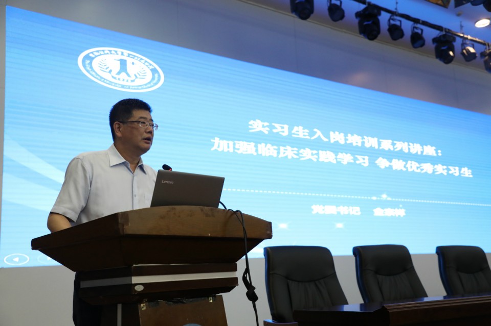 会上,党委书记金宗祥为实习生讲授题为《加强临床实践学习 争做优秀实习生》的入岗培训第一课,详细介绍了医院的整体情况、医疗、科研,特别是教学方面取得的一系列成果,对同学们提出了殷切的希望。副院长王珩强调,希望在坐的同学在未来实习的一年时间里,珍惜机会、主动学习、吃苦耐劳,把学校里学到的理论知识和临床的真实病例有机结合起来,充分的理解,灵活运用,践行“好学力行,造就良医”的校训,早日成为一名优秀的医生。(教育处 夏青)