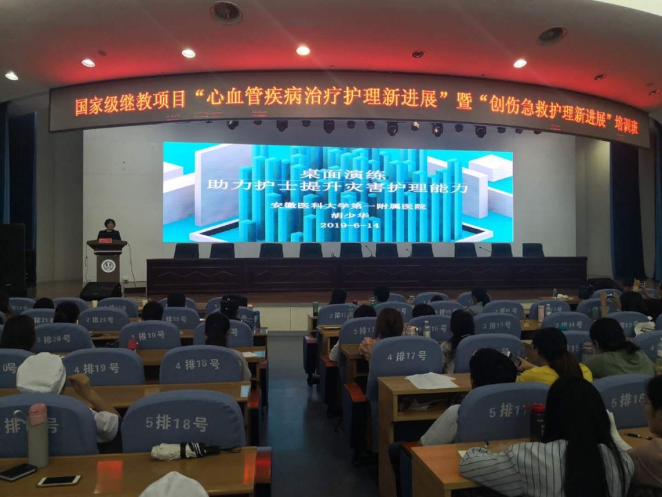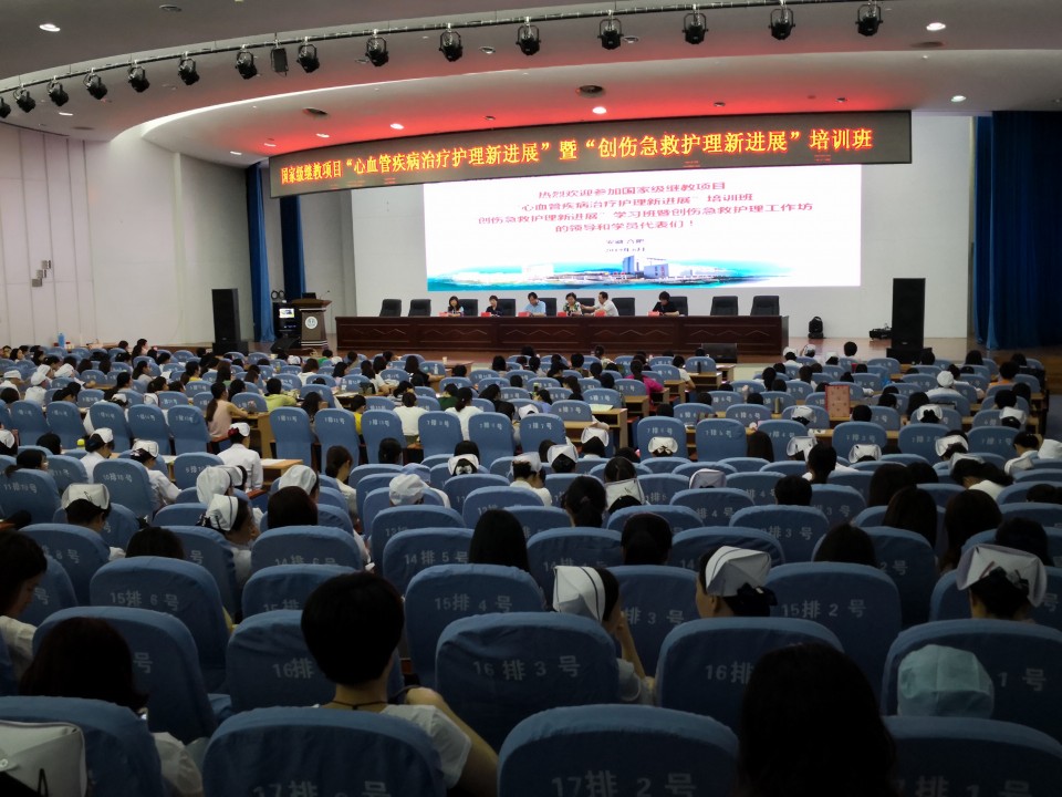 为进一步提高全省心血管及创伤急救护理专业人员的素质和能力,6月13日至6月16日,由我院主办的国家级继续教育项目“心血管治疗护理新进展”及“创伤急救护理新进展”培训班在内科医技楼四楼会议中心举行, 省护理学会理事长武义华、副院长孙国平及相关部门负责人参加开幕式。开幕式由护理部主任胡少华主持,来自省内外约400余名学员参会。