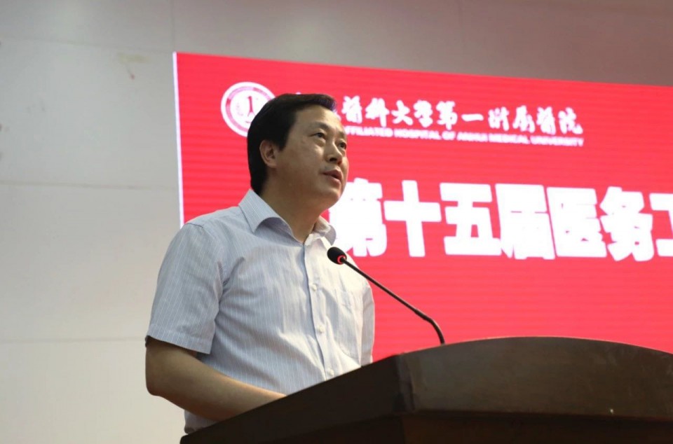 省卫健委医政与医管处副处长胡珏发表讲话。对我院2018年度取得的工作亮点和成绩给予了充分肯定,同时指出,2019年是全面建成小康社会关键之年和卫生健康改革发展之年,作为我省龙头医院,希望安医大一附院努力争当“五个排头兵”,继续发挥好特色和优势,围绕国家卫健委和省卫健委重点工作任务,进一步提高政治站位,层层传导,抓好落实,解放思想,加快发展,朝着创建国家医学中心和国家区域医疗中心的目标努力,为我省的卫生健康事业、为全省人民的健康事业做出新的、更大的贡献。