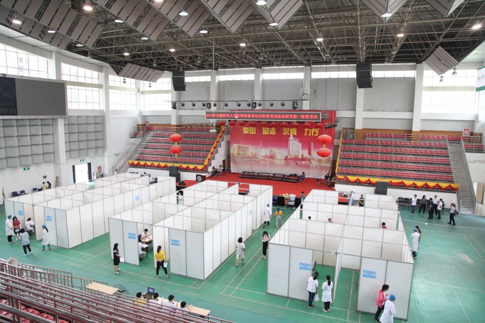 临床执业医师分阶段考试实证研究第一阶段考试由国家医学考试中心主办,为制订我国分阶段考试试点工作方案提供依据;为今后确定分阶段考试考务管理技术规范做基础性准备,具有重要的战略意义。今年全国共有49个院校、89个基地参加实证研究。考试时间安排在医学生完成临床见习后进行,成绩合格者,方可参加第二阶段考试。我校临床医学专业五年制(含“5+3”一体化)普通全日制在校生共计816名同学分9组参加临床基本技能考核。本次考试采用客观结构化临床考试(OSCE)的形式,共设6个考站,考试内容包括病史采集、体格检查、基本操作3大部分。病史采集部分,学生与SP(标准化病人)进行沟通交流,考核方式为口试;体格检查部分,学生在标准体检者身上完成操作考试;基本操作部分,学生在模拟人进行基本技能操作;还从不同角度关注学生沟通能力、人文关怀等职业素质。
