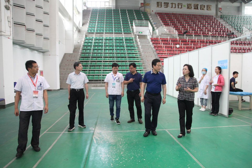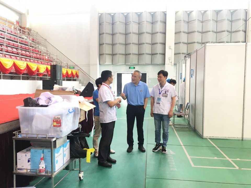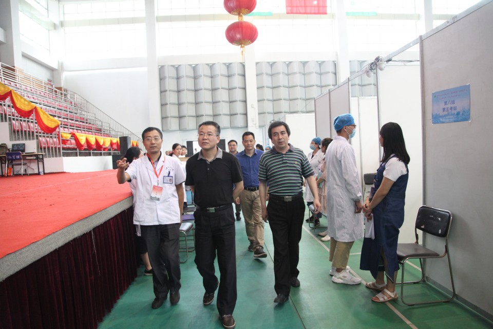 5月31日至6月2日,医院在校知行楼和体育馆承担《国家医师资格考试临床类别分阶段考试实证研究》第一阶段技能考试工作,这是我院自2016年开始连续第四次承担此项工作。校、院领导高度重视此次考试工作,校纪委书记常业军、副校长余永强,第一临床医学院(第一附属医院)院长梁朝朝、纪委书记陈宏凯、副院长王珩、党委副书记李琮、教育处处长陈明卫等分别巡查考场准备和考试情况。