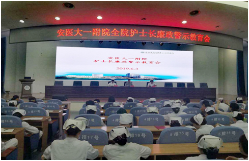 为进一步提高护理管理者政治意识、大局意识、核心意识和看齐意识,增强护理管理者拒腐防变能力、牢固树立全心全意为病人服务的宗旨意识,医院于6月3日下午在内科医技楼四楼会议中心举行“全院护士长廉政警示教育会”。纪委书记陈宏凯作廉政警示教育专题报告,会议由护理部主任胡少华主持,护理部相关负责人和全体护士长参加会议。陈宏凯从转变思想观念、强化政策落实、严肃自查自纠三个方面对护理管理干部进行深刻教育。他结合医院现状分析面临的形式,要求全体护士长转变思想观念,摒弃陈旧的观念、做法,特别是在医用耗材申领、国有资产管理、奖金绩效发放、人事管理等关键环节,护理管理人员要加强学习、明确职责,增强自身的领导力与执行力,杜绝违纪行为发生。希望全体护士长学习贯彻党的十八大以来和中央八项规定,学习贯彻《中国共产党纪律处分条例》,把严守政治纪律和政治规矩永远排在首要位置。陈宏凯强调,全体护士长要结合自身工作实际,查找在学习态度、工作方法、奖金发放、绩效管理等方面的存在问题,转变工作作风,提出切实可行的整改措施。