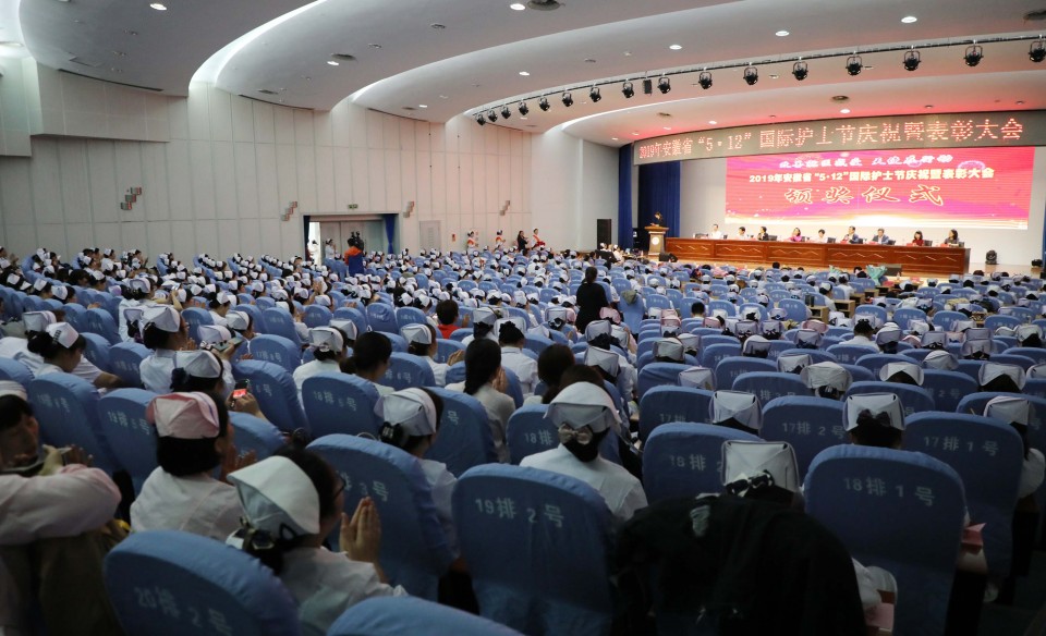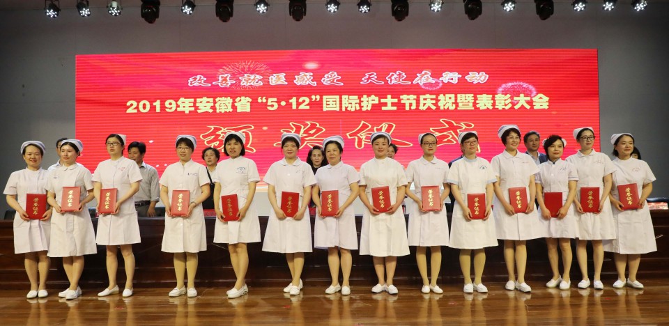 5月9日下午,全省“5•12”国际护士节庆祝暨表彰大会在我院内科医技楼四楼会议中心召开。此次会议由安徽省卫生健康委员会主办,省护理学会承办,我院协办。省卫生健康委副巡视员王宇铭、省护理学会理事长武义华、院长梁朝朝出席开幕式,会议由省卫健委医政医管处处长杨绪斌主持。安徽省卫生健康委员会、省民政厅社会组织管理局、省属医院负责人、护理部主任、护士代表以及护理老专家代表等500多人参加会议。会上,省护理学会理事长武义华致开幕词,省护理学会秘书长李志菊宣读2019年度安徽省“优秀护理工作者”表彰决定。我院护理部副主任、高新院区护理部主任丁萍获此殊荣。会议还向全省21万名护理工作者发出践行“十个一”的倡议并进行集体宣誓。我院护理部胡少华主任作为宣誓代表,带领全省三十位省市级医院护理部主任宣读《改善就医感受 天使在行动》倡议书。“十个一”即一张真诚的笑脸、一套规范的礼仪、一间舒适的病房、一副温馨的隔帘、一项规范的操作、一个耐心的解答、一次用心的指导、一组便民的措施、一声亲切的道别、一次暖心的随访,号召全省广大护理工作者继续发扬南丁格尔精神,积极致力于改善医疗服务行动。努力为患者提供细致周到、舒心方便、更有温度的优质护理服务。