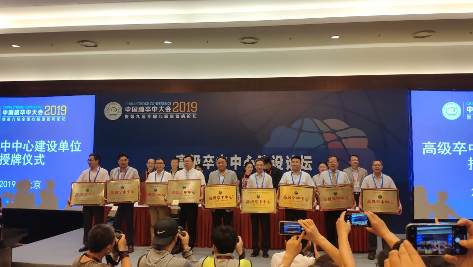 2019年5月16日至19日,由国家卫生健康委脑卒中防治工程委员会、中国老年保健医学研究会等单位联合主办的“2019中国脑卒中大会暨第九届全国心脑血管病论坛”在北京举行,我院被授牌“国家高级卒中中心”。