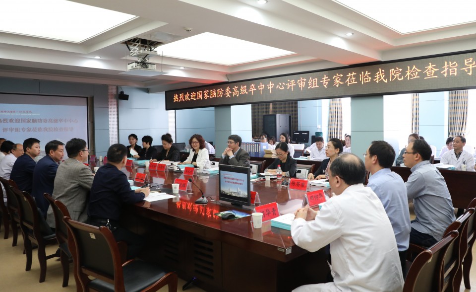 随后,神经内科科主任汪凯教授就医院高级卒中中心创建工作和创建成效进行了详实的PPT汇报。副院长费广鹤对本次迎评做了具体布置,评审组专家在相关科室负责人陪同下,分为管理组、外科组、内科组、绿色通道组、神内康复组、医技组等六个小组到相关部门和科室进行了现场评审。