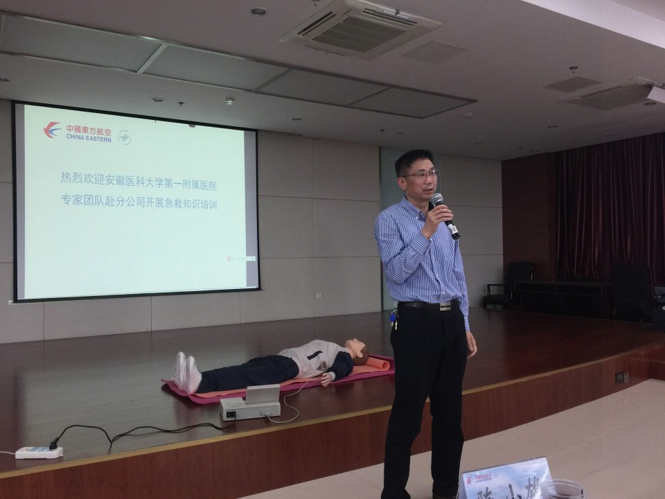 4月24日,院党委副书记戴晓支、高新院区副院长张泓等一行来到东航安徽分公司,为公司的空乘、地勤人员开展机上急救技能培训讲座。院党委副书记戴晓支代表医院向东航安徽分公司赠送了一台教学用心肺复苏模拟人。戴晓支指出,开展机上急救培训进东航的活动,是落实2018年双方党团联建协议的具体举措,通过双方党委的共建活动,既可以互相学习党建工作的先进经验,也可以在做好服务这一双方共同关注的主题上互相学习,同时有利于保障医院职工的出行。此次急救培训讲座,既可以提高空服人员的急救技能,也有力地保障了乘客安全舒适地乘坐航班,可谓一举多得。