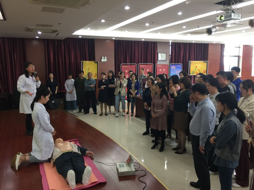 随后,张泓教授利用一个半小时的时间,详细讲解了心搏骤停的判断、急救等相关知识,利用心肺复苏模拟人手把手教学演示,取得了良好的教学成果。参与培训人员纷纷表示,此类培训活动非常及时、很有必要,在讲座结束后还不停地与张泓教授交流工作中遇到的突发事件及处置过程,希望得到她的指点,张泓教授一一进行了解答。