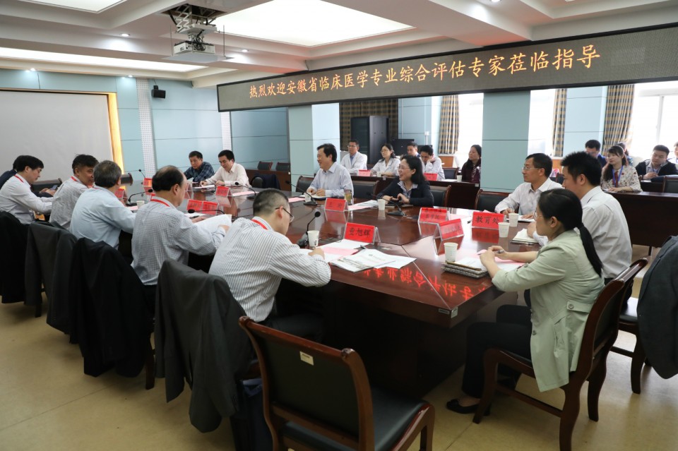 4月24日至26日,安徽省高校临床医学专业综合评估专家组一行对我校临床医学专业的建设情况进行现场考察。本次评估受省教育厅和省西医学类专业合作委员会的委托,专家组由蚌埠医学院党委书记高怀荃任组长、哈尔滨医科大学曹德品教授任副组长。院党委书记金宗祥、院长梁朝朝、副院长王珩等参加汇报会。梁朝朝院长作为学校临床医学专业负责人进行专题汇报。