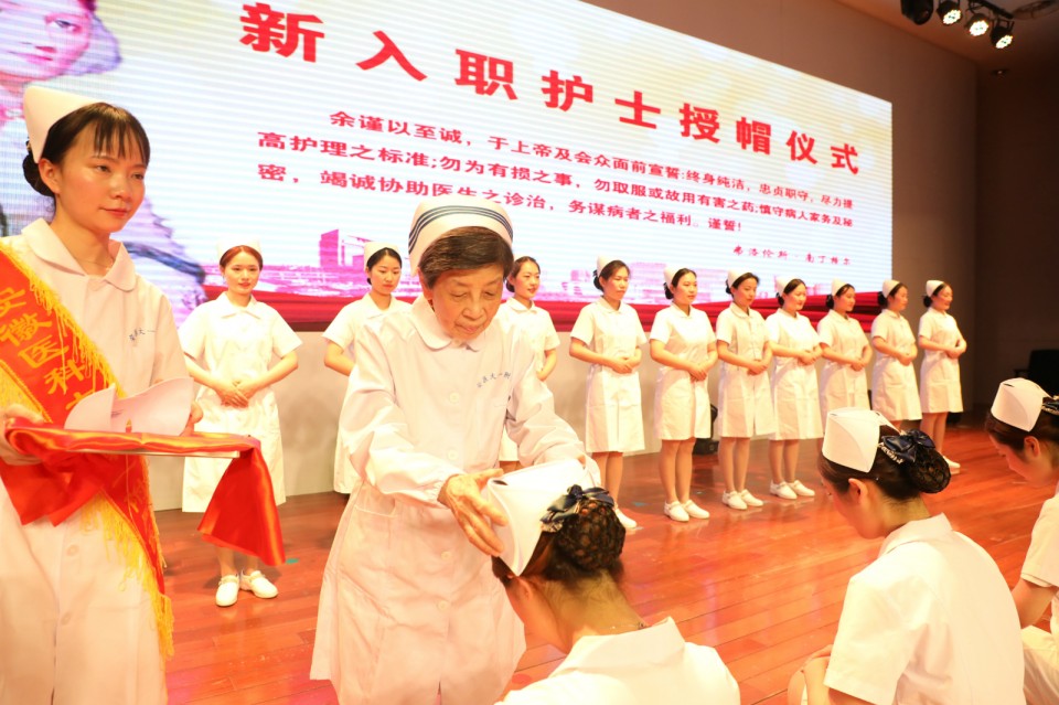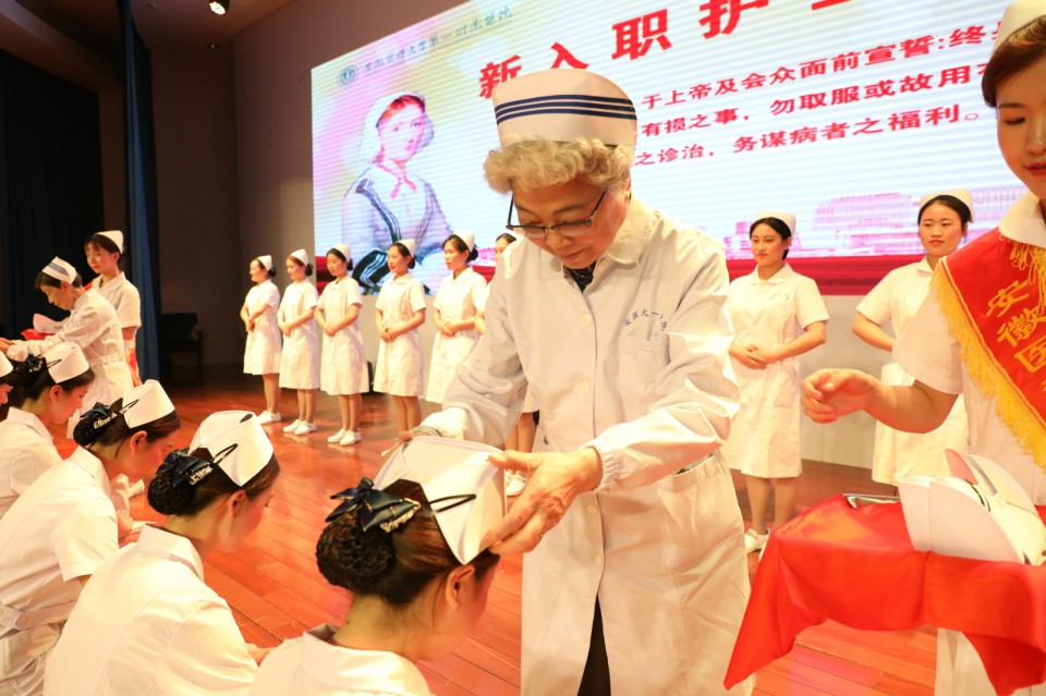 一袭飘然的白衣是一颗纯洁的心灵,一顶别致的燕帽是一项守护生命的重任,燕帽传承,以心为灯,护理老前辈李丛瑛主任、施亦文为2018年新入职护士代表授帽,感恩护理前辈们,是他们的努力让护理事业得到了不断的发展。新老一辈安医人展示了他们多才多艺的综合素质,积极向上的精神风貌,用传承和进步共同描绘新时代安医发展的宏伟蓝图。