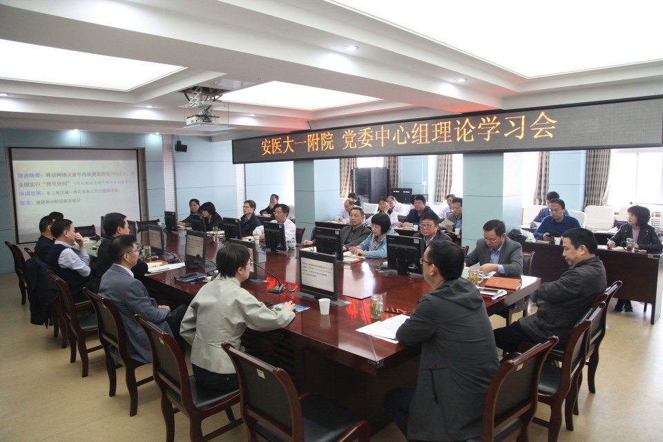 3月28日下午,医院在行政楼五楼第二会议室组织党委中心组理论学习,全国人大代表刘荣玉传达“两会”精神、集中学习《中国共产党重大事项请示报告条例》和《中共中央关于加强党的政治建设的意见》。党委副书记、院长梁朝朝主持会议。党委中心组全体成员参加了本次学习。