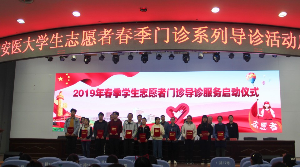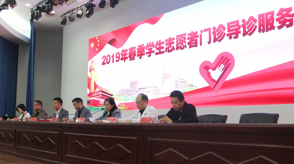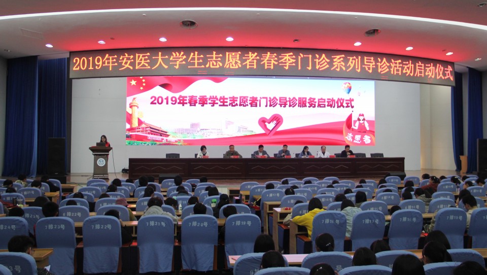 4月1日,医院在会议中心举行学生志愿者服务队志愿导诊服务总结表彰暨2019年度春季导诊启动仪式。院党委副书记戴晓支、第一临床医学院学生党总支副书记刘从云、薛磊、院门诊部主任胡华青、院团委书记黄尧等出席会议,第一临床医学院参加导诊服务的1000余名学生参加。会议由院团委副书记颜蕴文主持。戴晓支在会上代表医院感谢上一批辛勤工作的志愿者们,并欢迎新一批学生加入志愿服务群体中来。我院志愿服务收到广大师生和社会各界的关注和认可,此次加入志愿服务的学生人数首次突破1000人次,创历史新高。他指出,志愿服务是高尚的事业,是弘扬社会正能量的重要载体,他希望同学们继续发扬志愿精神,通过志愿服务了解社会、服务社会,丰富自身阅历和经历,不断提升自己,做青年表率。要在上一届师兄、师姐工作的基础上,更加创新性的完成工作,期待明年表彰更多的优秀学生志愿者。此外,同学们要合理安排好学习和志愿服务的关系,针对工作上遇到的问题,对医院医疗服务管理工作提出宝贵的意见和建议。