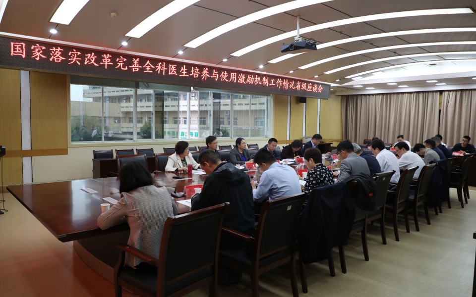 4月9日上午,国家卫生健康委科教司副司长陈昕煜一行在省卫生健康委副主任高俊文、科教处处长董亚杰及相关厅、局工作人员陪同下来院召开国家落实改革完善全科医生培养与使用激励机制工作情况省级座谈会,院党委书记金宗祥、院长梁朝朝、副院长王珩、毕业后教育处处长田仰华、全科基地主任李洁华参加了此次座谈会,会议由高俊文副主任主持。陈昕煜副司长就此次调研背景做了简单介绍,对我省近几年全科医生队伍建设、培养体系建设、使用激励机制等方面取得的积极进展和成效给予了肯定,指出当前应将加快壮大全科医生队伍、全面提升全科岗位吸引力、深入实施人才健康扶贫工程作为重点工作,在提质增量、强化激励、突出重点的同时,要将全科医生队伍建设纳入医改的重要内容,加强监测评估、督导检查、经验推广和宣传引导、切实发挥综合医改试点省的示范引领作用,确保改革成果落地见效。