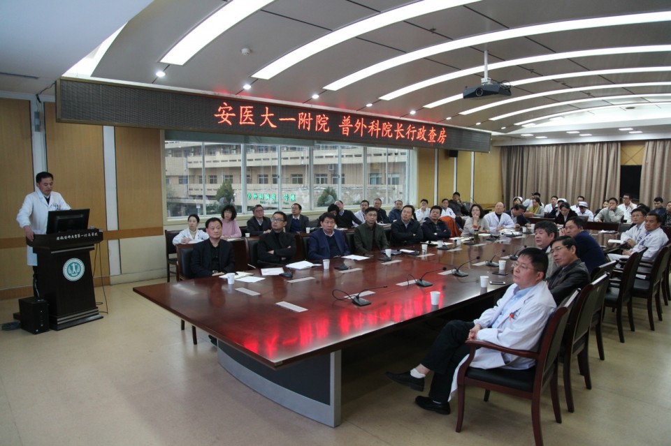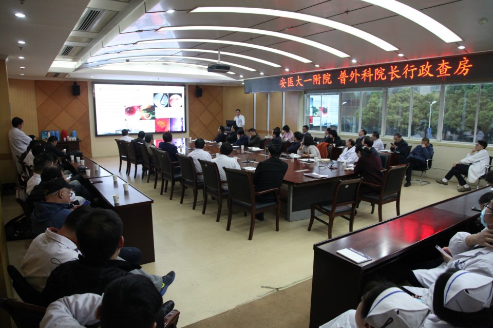 4月11日晚,院长梁朝朝、常务副院长李家斌、副院长费广鹤、王珩及党委副书记戴晓支一行赴干部病房二楼会议室进行普外科院长行政查房,相关职能处室负责人及普外科医护代表出席会议。会议由常务副院长李家斌主持。